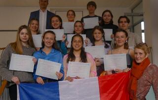 11 Schülerinnen und Schüler aus verschiedenen 10. Klassen und 5 Teilnehmer des Französischkurses der 12. Klasse des Penzberger Gymnasiums, die im März 2025 zur DELF-Prüfung auf den Niveaus B1 und B2 angetreten sind, haben das weltweit bekannte französische Sprachdiplom erworben. Eine wirklich großartige Leistung! Chapeau!!